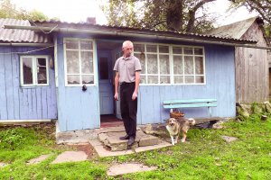 — Мій друг Микола із Золотого Потоку вчився в Києві в духовній семінарії. Його собака цей час жив зі мною. Кілька років тому Микола перебрався в Карпати і забрав пса. Бім цієї зими сам повернувся до мене, — виходить назустріч на дорогу 59-річний Ярослав Цісарчук. Його собака Бім гавкає, стрибає і пристає до моїх ніг. Чоловік сам живе в лісі.