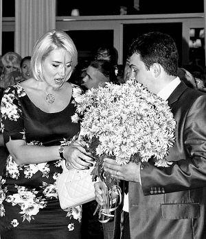У руках тримає букет квітів. На вечірку прийшла зі своїм наставником Миколою Недільком. Він адвокат екс-майора Миколи Мельниченка, з яким Наталі приписують роман.