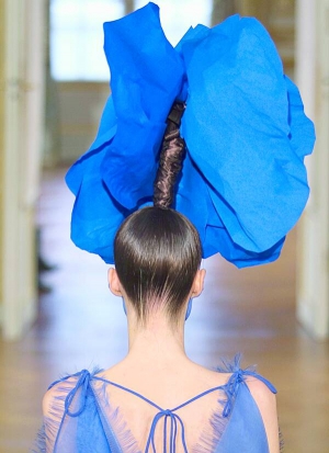 Перукарі зібрали моделям волосся у хвіст. За допомогою мусу і пінки підняли догори.