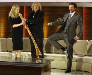 Актриса 41-річна Ніколь Кідман розлютила австралійських аборигенів. У прямому ефірі німецького телешоу вона видула кілька нот із їхнього традиційного духового інструмента — диджериду. Жінкам на ньому грати заборонено. Кажуть, навіть доторкнувшись до цього інструмента, можуть залишитися безплідними.