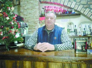 З Олександром Сергійовичем говоримо у нього в закладі. Він розділений на два зали. В обох стоять масивні дерев'яні столи. Стільці обтягнені шкірою. Меблі господар зробив сам.