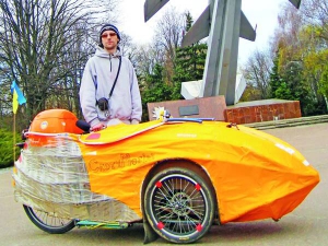 — Я ним щотижня їжджу в Черкаси й Чигирин по продукти. Машини не хочу, — говорить Олексій. — Лежачих велосипедів зробив на замовлення 25. Роз'їхалися по всій Україні. Сподіваюся відкрити власну фірму й виробляти такі веломобілі, як у Європі. Мої будуть дешевші, бо європейські коштують 8 тисяч євро. Олексій сідає в скотчмобіль. Плавно і швидко рушає на проїжджу частину. Вливається у потік машин. Водії поступаються дорогою.