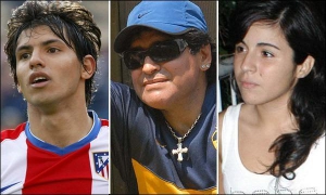 Тренер збірної Аргентини Дієго Марадона (на фото у центрі) видав свою доньку Джанніну за футболіста мадридського ”Атлетіко” Серхіо Аґуеро (ліворуч)