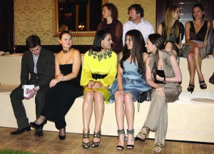 У першому ряду сидять дружина сина екс-президента Ліза Ющенко (крайня праворуч) із сестрою телеведучою  Марією Єфросиніною (посередині). На аукціоні у столичному готелі ”Інтерконтиненталь” вони продавали сукні