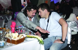 Актор 42-річний Остап Ступка прийшов напідпитку на вечірку з нагоди 10-річчя мережі ресторанів "Козирна карта". Його веде дружина Ірина, 30 років. На вході перевіряють колір браслетів на руках. Віп-гостей із рожевими садовлять ближче до сцени. Ступка шукає браслет у внутрішніх кишенях піджака. Охоронець упізнає його, проводить за столик.