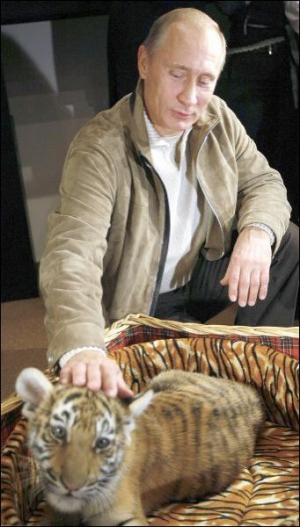 На 56-річчя прем"єр-міністру Росії Володимиру Путіну подарували уссурійське тигреня. Молодій тигриці 2,5 місяці. Володимир Володимирович вагається: назвати її Мілашкою чи Машенькою?