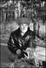 Від Світловодська до залізничного переїзду добираємося на "Жигулях". Залишаємо автомобіль у Кирилівському лісництві й рушаємо ледь примітною стежкою. За чверть години в повітрі потягло димком. Ось і землянка. Господар — середнього зросту. Обличчя відкрите, очі сині, погляд гострий. Перший тисне руку. Долоня тверда. У тілогрійці, шапці, кирзових чоботях: одягнений скромно, полісовому, але чисто.