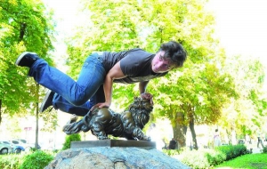 Сергій іде до бронзового пам"ятника коту Пантелеймону. Обіймає його, смикає за вухо, вилазить верхи. Ставить ногу котові на хвіст, руками спирається на голову. Біля скульптури збирається черга — усі хочуть сфотографуватися. Костецький відходить убік, іде до лавки. Розповідає, що зі своєю дівчиною познайомився цієї весни.