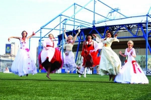 — Найбільше нареченим сподобалася футбольна гра на стадіоні "Металіст". Вони бігали в білих пишних сукнях за м"ячем. Він ховався під обручами, на яких трималися кринолінові сукні. Дівчата обома руками підтримували спідниці. Потім грали в баскетбол, теніс. Уболівали, коли на поле вийшли грати вихованці футбольної школи клубу "Металіст".
