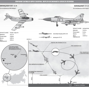 — Насправді все було інакше, — стверджує Олексій Архипович. — 27 березня 1968 року під час пілотування літака з екіпажем Серьогін-Гагарін у цьому ж районі несанкціоновано опинився інший літак Су-15, що здійснював політ з аеродрому "Жуковський". При цьому льотчик порушив режим, спустився до висоти 450 метрів — а я це знаю, бо розмовляв зі свідками — на форсажі (розгоні до надзвукової швидкості. — "ГПУ) пішов на свій ешелон і на відстані 10-15 метрів у хмарах, пройшовши поряд із Гагаріним, перевернув його літак, загнав у штопор, точніше, у глибоку спіраль на швидкості 750 кілометрів на годину. Літак Гагаріна здійснив півтора витка й на виведенні зі штопора зіткнувся із землею.