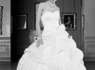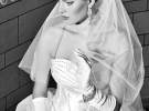 На весілля вдягла довгу білу сукню від дизайнерки Катерини Шаховської й фату до пояса.