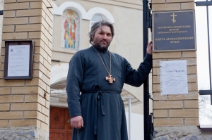 Храм очолює 43-річний Олександр Дедюхін. Під'їжджає на старій білій "дев'ятці" до воріт. Він у чорних штанях і светрі. Поверх накинув теплий жилет. Заносить до церкви пластикове відро з фарбою. У приміщенні літає пилюка. Деякі ікони обмотані клейонкою. Місце для півчих відгороджене дерев'яною кафедрою. На ній — вирізьблений герб України.