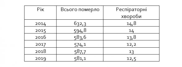 Отже, середня смертність на підконтрольних територіях становила 592,3 тисячі осіб, через респіраторні хвороби – 13,1 тисячі. Але за 2020 рік ми маємо лише піврічні дані, тож поділимо попередні результати навпіл: 296,15 та 6,55 відповідно.