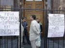 Близько 20 депутатів стукають кулаками у двері Генпрокуратури. Вони зачинені. Дзвонять у дзвінок, але їм не відкривають.