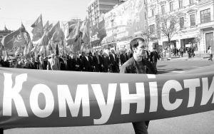 1травня біля столичного пам"ятника Леніну проходить мітинг. Учасники тримають прапори Компартії, Блоку лівих сил, плакати з написами "Back in USSR", "Ратифікації так!", "Да Советскому союзу". Люди вітають одне одного зі святом, обіймаються, цілуються, дарують квіти й повітряні кульки.
