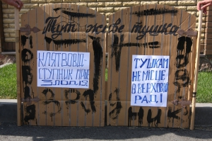— Сьогодні зібралися люди, які обійшли весь район, агітуючи за Кутового. Він присягнув народу та країні, але зрадив свою клятву. Ми кажемо "ні" клятвовідступництву та зраді, — говорить організатор акції 51-річна Тамара Бігун, член районної Києво-Святошинської "Батьківщини".