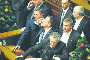 Після перерви на трибуну йде лідер фракції "Батьківщина" 38-річний Арсеній Яценюк. За ним — із півсотні опозиціонерів.