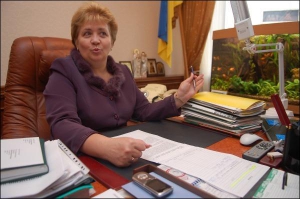 Помітно, що господиня нещодавно пофарбувала волосся у світлий колір і трохи змінила зачіску. Поруч із робочим столом акваріум. Запитуємо, чи голова ФДМУ сама обирала рибок. Каже, що ті залишилися їй у спадок від попередника — Михайла Чечетова.