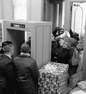 Чотири десятки студентів вриваються до комітетів Верховної Ради. Тут на другому поверсі у вівторок проходить засідання парламентської погоджувальної ради. Біля рамки металошукача дорогу їм заступають п'ятеро охоронців. Виштовхують мітингувальників у вестибюль.