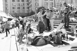 Учасники протесту збирають речі в сумки, складають парасолі, згортають каремати. Майданчик під Українським домом протестувальники залишають як незмінне місце зустрічі.