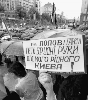 — Думала, що зайдемо всередину й викинемо цих придурків звідти, — каже Людмила Пономаренко з Борщагівки. Складає чорну парасольку. — Покричати "Банду геть!" і поспівати гімн — це нічого не дасть. "Коктейль Молотова" треба брать. Іначе нічого не буде.