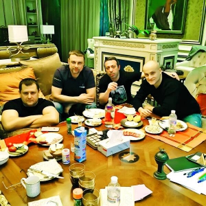 Це фото 7 листопада на своїй сторінці у "Фейсбуку" опублікував дніпропетровський бізнесмен 45-річний Геннадій Корбан (третій ліворуч). Із позафракційними народними депутатами Борисом Філатовим, Віталієм Купрієм (праворуч від нього) та Вадимом Денисенком п'ють горілку. Закушують ковбасою, сиром, мандаринами, цукерками.