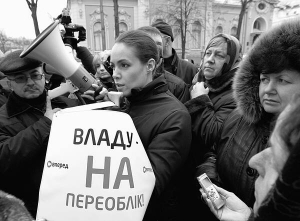 Королевська зі співголовою руху "Вперед!" Андрієм Панаетовим проходять крізь заслін "беркутівців" до дверей Кабміну. Вішають табличку "Владу — на переоблік" та повертаються до людей.