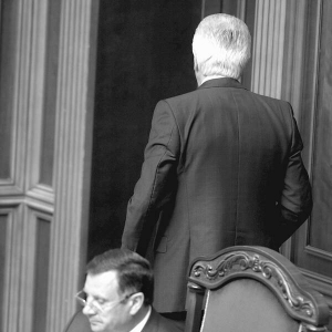 — Мій колишній товариш, з яким я ділив хліб і сіль, повністю мене здав, — каже на початку засідання парламенту 56-річний Володимир Литвин. Показує на першого віце-спікера Адама Мартинюка, який напередодні поставив мовний законопроект на голосування. — Тому я прошу, включіть до порядку денного питання про мою відставку. Як сказав один народний депутат, "вони розвели їх, як котят". Але, за великим рахунком, розвели Україну, розвели народ. І плоди цього "розводу" ми ще будемо пожинати.