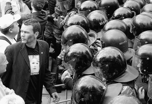 — На мене йшли п'ятеро міліціонерів у цивільному — двоє спереду і ще троє ззаду, — розповідає про затримання Мирослав Набиль. Після виходу на волю у вівторок він прийшов до наметового табору партії "Батьківщина" біля Печерського райсуду. — Крикнули "Стоять, міліція!". Я мав лише одну думку — чим скоріше дати драла. Вискочив на перехрестя — автомобілі позупинялися. Мене довго не могли впіймати. Люди виходили з машин, питали, що відбувається. А міліціонери відповідають: "Він украв сумку в жінки, це — злодій!". Я казав, що це політичне затримання. Скрутили мене й відвезли до главку українського МВС.