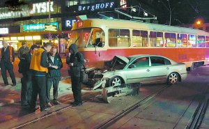 Народний депутат з фракції "Блоку Петра Порошенка" Олег Барна в'їхав на автівці у трамвай на пл. Перемоги в Києві 14 червня близько 23:00.