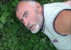 В Інтернеті з"явилося оперативне відео затримання Пукача. Він — чоловік із сивим волоссям і бородою, одягнений у світло-сіру майку та камуфляжні штани. На нього одягають наручники і кладуть на траву.