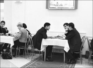 Тим часом кілька парламентарів із Партії регіонів спускаються в їдальню, що в підвалі Ради. Замовляють по 100 г коньяку. Просять продавчиню налити його в чашки для кави.