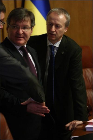 — О, Саша, а ти чого тут? Що сталося? Космос бушує? — говорить Луценко про міського голову Леоніда Черновецького.