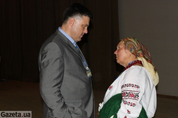 Олега Тягнибока відводить у бік 73-річна Любов Полякова з Житомира. Нашіптує йому молитву.