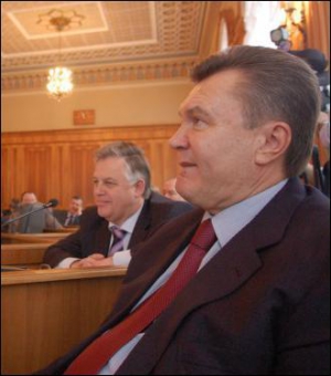 Тим часом до свого місця повільно проходить лідер "Регіонів" Віктор Янукович, 58 років. Останнім часом він помітно схуд. Вмощується на стільці й розкладає перед собою папери.