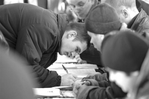 Один з ув"язнених підписується в отриманні бюлетеня, але його не бере і йде геть. За кілька хвилин міліціонери повертають засудженого на дільницю.