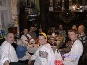 Голова всеукраїнського об’єднання ”Тризуб” Андрій Стемпіцький (ліворуч) тримає на руках найменшого сина Ростислава
