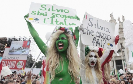 Активістки українського жіночого руху FEMEN очолили багатотисячний протест у Римі за негайну відставку Сільвіо Берлусконі з поста прем'єр-міністра Італії.