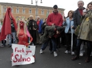 Активістки руху прийшли протестувати топлес в кольорах італійського прапора. Бурхливу підтримку у народу отримали плакати FEMENок "Silvio, che cazzo fai?" та "Fuck you, Silvio!". Учасники протесту кричали українкам "Брава!", "Граца, белла".