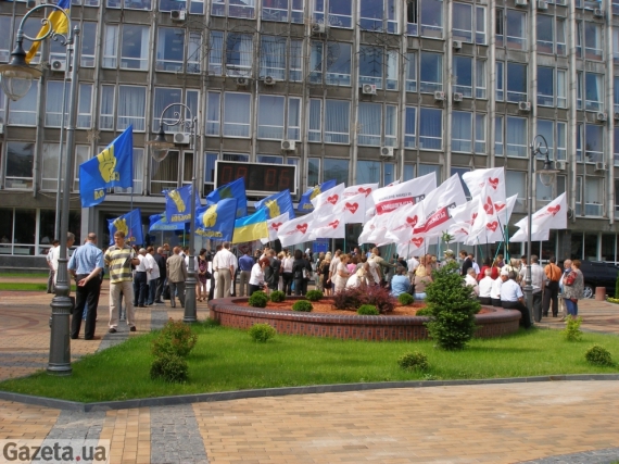Як повідомив кореспондент Gazeta.ua, сьогодні Вінницьку міську раду пікетували близько 100 чоловік. В руках тримали прапори "Батьківщини", "Свободи" та об'єднаної опозиції.