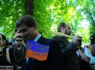 Справжнього нардепа Лисова, який вийшов до натовпу, аби поспілкуватись, зустріли вигуками "Ганьба!" і не слухали його доводи про користь майбутнього Житлового кодексу.