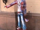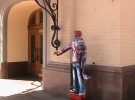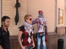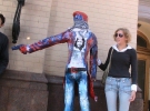 "Він автор і концепції, і самого пам'ятника. Робився монумент у домашніх умовах з підручних засобів, він виконаний у стилі постмодерну. Ми намагались наділити його зовнішніми рисами героїв сучасності - себто вдягли у футболку із зображенням Че Гевари, у кеди, почепили арафатку і дуже стильний фрак", - зауважила Сінькова.