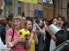 Тим часом під стінами будівлі парламенту відбулася акція "Врятуй свою мову!", направлена проти прийняття мовного законопроекту. Зібралось близько сотні активістів, яких прийшли підтримати зірки, письменники, філологи та співаки.