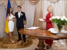 Батько нареченого на розпис приїхав із запізненням. На церемонії були присутні тільки рідні молодят. Весільний рушник під ноги стелили діти президента.