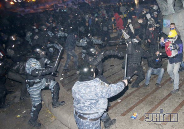 У ніч 30 листопада 300 озброєних силовиків "Беркуту" розігнали 100 протестувальників Євромайдану у столиці. Людей били кийками та ногами. Травмували 84-х, зокрема 17 студентів. Приводом для розгону стало нібито встановлення новорічної ялинки.