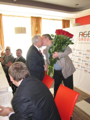 Також Копатько під час конференції подарував новому губернаторові Донецької області Анатолію Близнюку пишний букет троянд.
