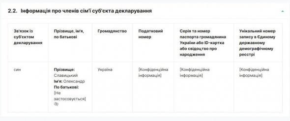У декларації нардепка від ОПЗЖ не вказує чоловіка, а тільки сина.