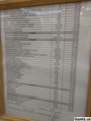 У їдальні Верховної Ради зайняти всі столи. В меню борщ з яловичиною за 45 грн 67 коп, салат з помідорів, огірків і перцю — 25,09 грн, котлета по-київськи — 46,49 грн. Найдорожчі страви — філе сьомги за 174,42 грн і голубці з м'ясом і рисом за 84,18 грн.