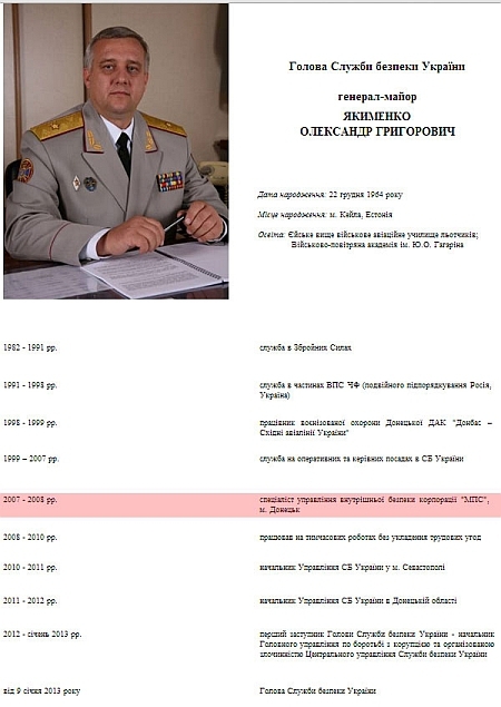 Про це свідчить його офіційна біографія, яка опублікована на сайті СБУ, пише Українська правда.