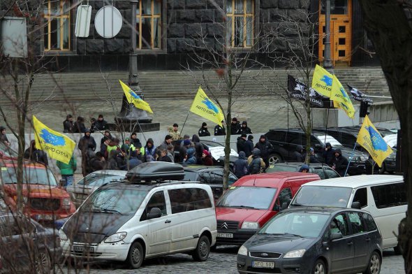 На мітинг прийшли люди з прапорами і плакатами, які вони встановили на узбіччі, а також на автомобілях. Основне гасло: "Парубій, досить кришувати Ноняка".